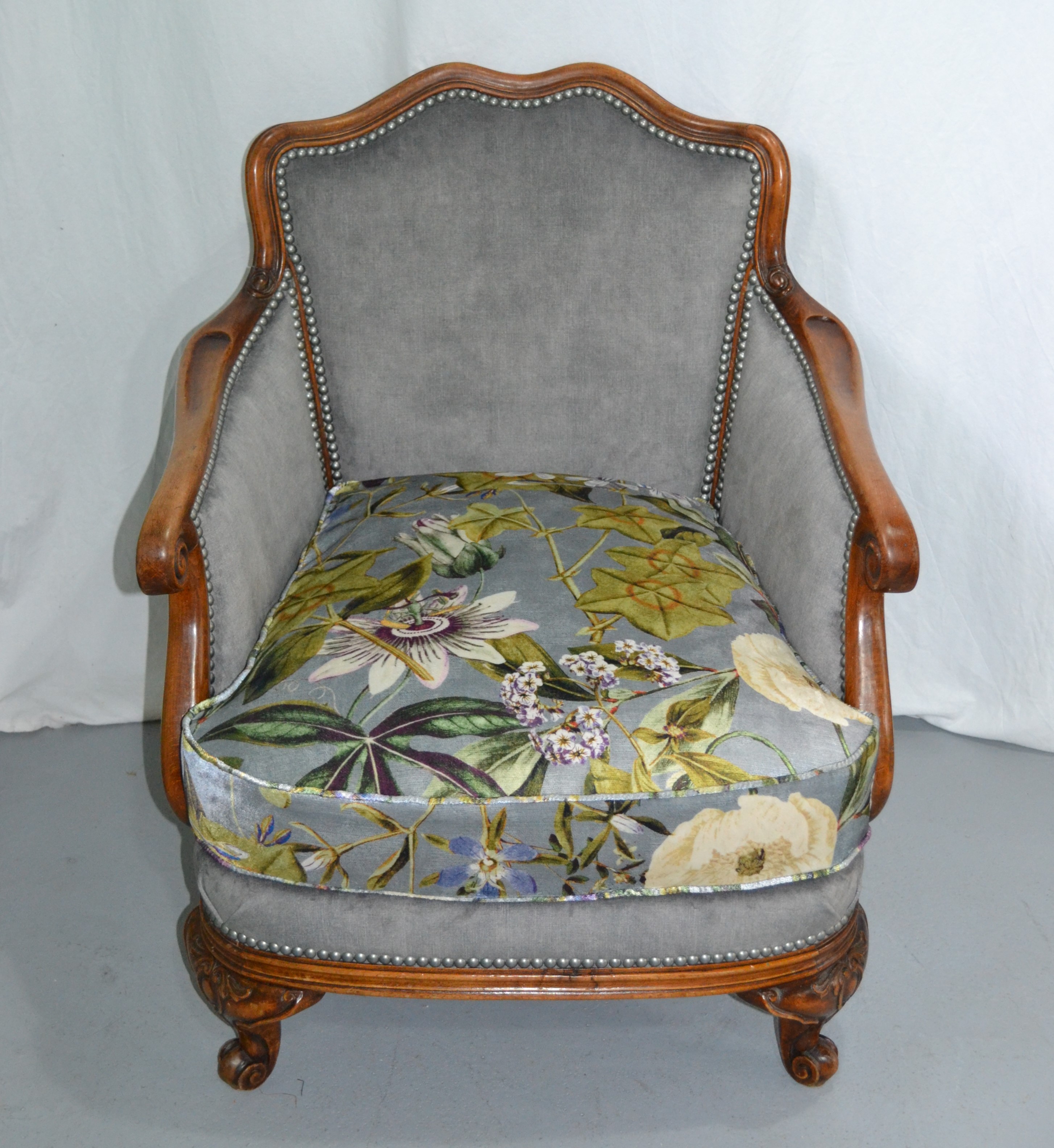 Un faux uni et l’imprimé Passiflora qui a un renvoi de lumière fabuleux.