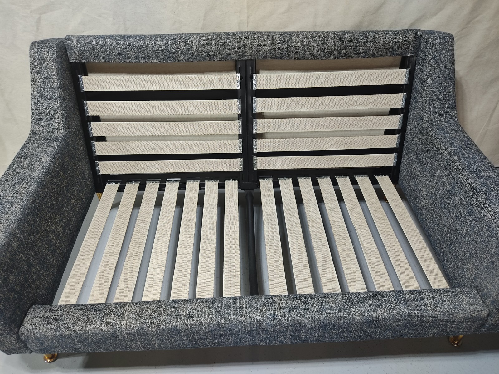 Structure métallique nettoyée, pieds polis, mais aspects d’origine conservés.